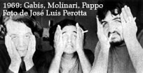 Una tarde muy calurosa del verano del 68, al finalizar el ensayo diario del incipiente Trío Manal en casa de Alejandro Medina, Javier Martinez me llevó a otro ensayo en una sala de teatro “independiente” en el centro de la ciudad. Allí se reunían varios músicos muy conocidos para preparar lo que más tarde se convertiría –de alguna forma- en Alma y Vida. El objeto de la visita era escuchar a un joven guitarrista, nuevo en el ambiente, que todos decían que “prometía mucho”. Cuando llegamos, ví por primera vez a Pappo, un muchacho flacucho arrodillado en el escenario, golpendo e insultando a un pedal que sostenía en las manos y amenazaba con arrojar lo más lejos y violentamente pósible. El Carpo estaba en cueros (la sala era un infierno de calor y humedad) y parecía muy, muy contrariado. Nos presentaron mutuamente como “guitarristas de blues” y entonces él me preguntó: “¿sabés algo de distorsionadores?. Compré este, anduvo fenómeno una semana y ya no funciona más”. Yo ya tenía cierta experiencia con esos bichos, así que lo tomé en mis manos y busqué como abrir el portapilas. “¿Le cambiaste las pilas? –le pregunté- puede ser que se hayan gastado”. Me miró atónito, y con su típica carcajada carpiana, esa que asustaba, pero nunca mordía, me contestó: “Que delirio. No tenía ni idea de que este relajo funcionara con pilas”. Salió corriendo y un par de minutos después volvió con un par de everredis nuevas. Entonces empezó a tocar, y me dí cuenta de que yo no estaba más sólo en aquello de tocar guitarra de blues. Estaba también Pappo, ¡y de que manera!. Allí, inmediatamente, nació entre ambos una amistad pisciana y guitarrística –mucho más fuerte que nuestra supuesta rivalidad como violeros- que duró hasta que me fui del país en el 72. Durante esos años, aprendimos mucho el uno del otro, nos pasamos yeites, tocamos horas sin parar en nuestras respectivas casas y también –¡que lindos recuerdos!- pateamos juntos, charlando sobre chicas y música, las calles de Caballito y Paternal y las vías de carga de Barracas y Avellaneda. Cierro los ojos, me concentro, y vuelvo a escuchar los sonidos de su increible carcajada y su insuperable guitarra.
